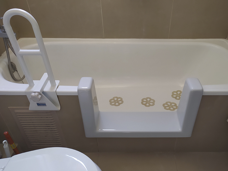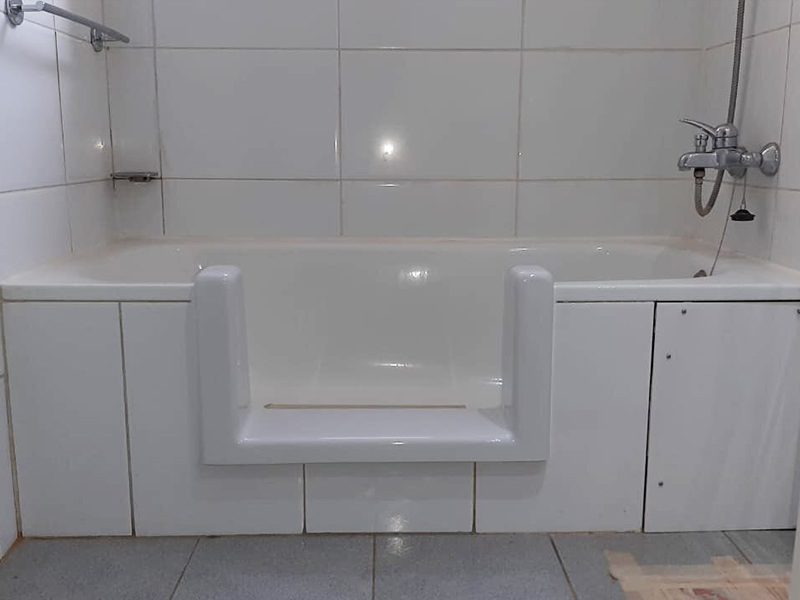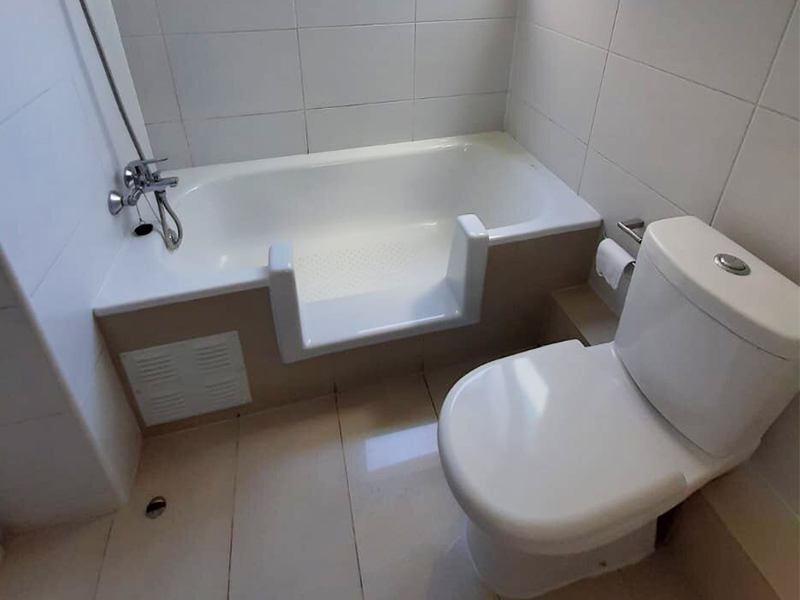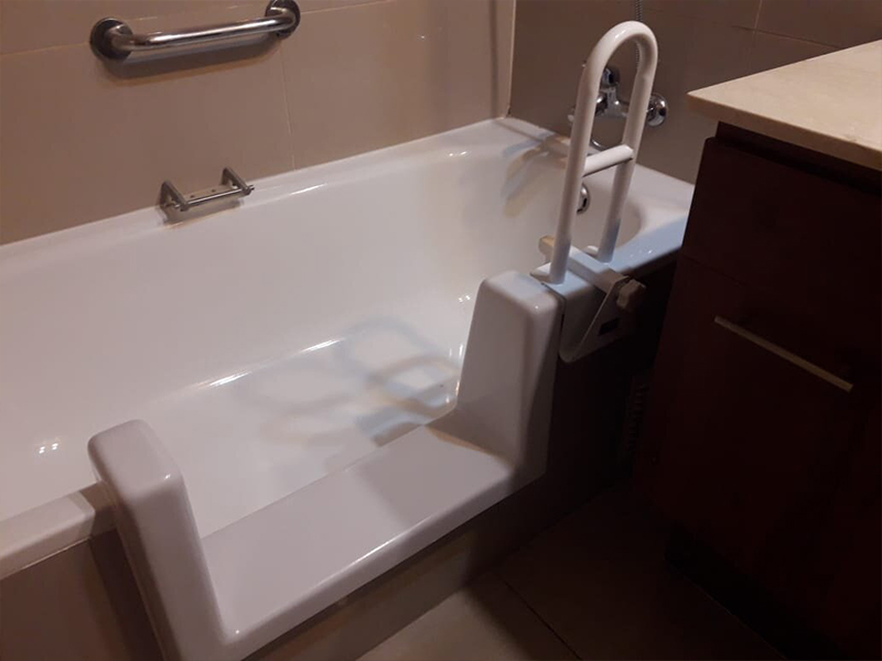 Consiste en adaptar tinas de baños normales o hidromasajes, de manera que las persona que tienen problemas de movilidad - en especial adultos mayores - puedan acceder y salir de ésta con mayor facilidad.
