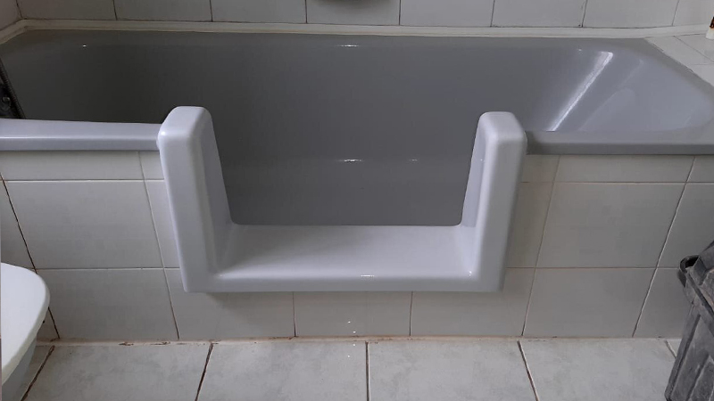 Esta adaptación consiste en hacer un rebaje sólo en una parte de la tina, con lo que la intervención en el baño es menor que la alternativa usual que consiste en sacar la tina completa y reemplazarla por un receptáculo.