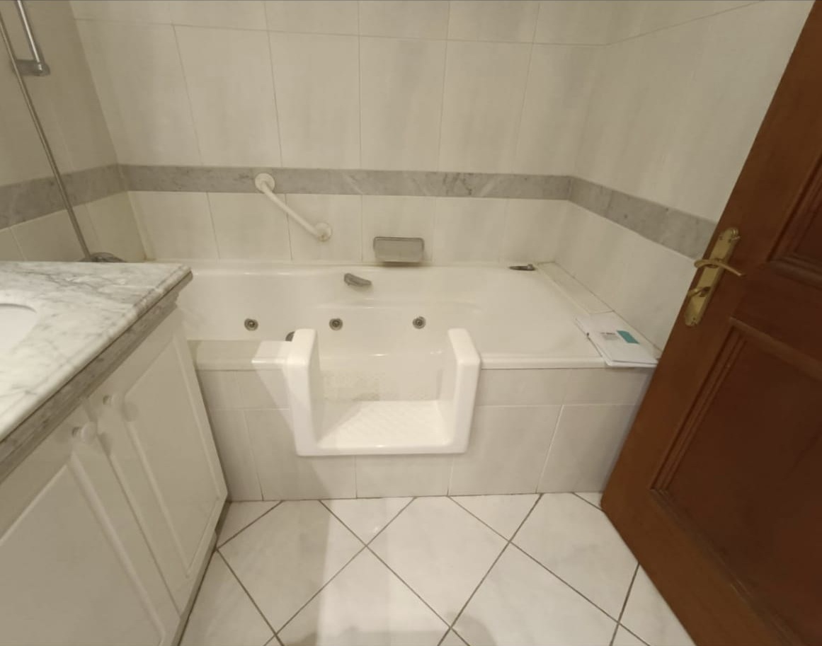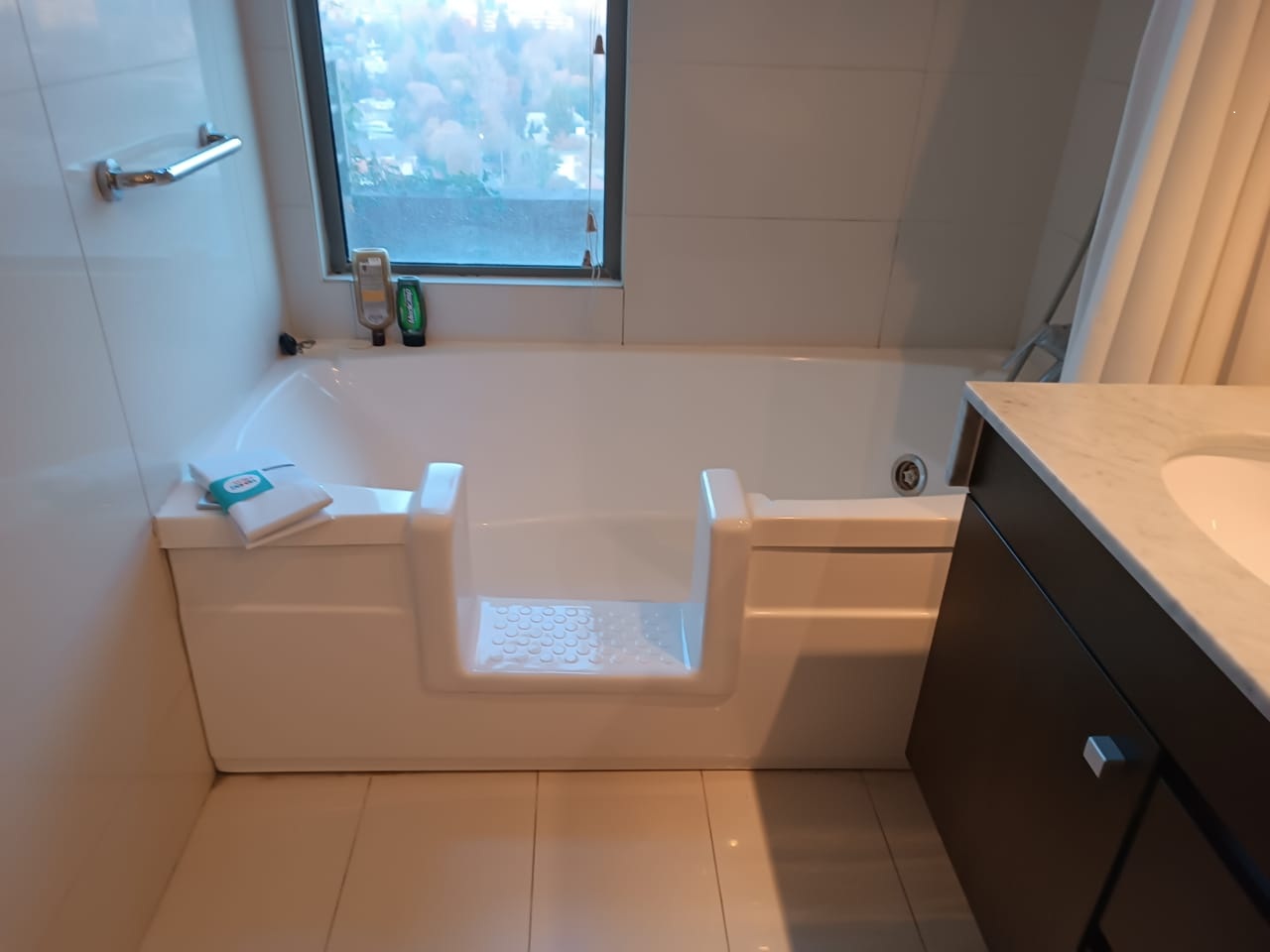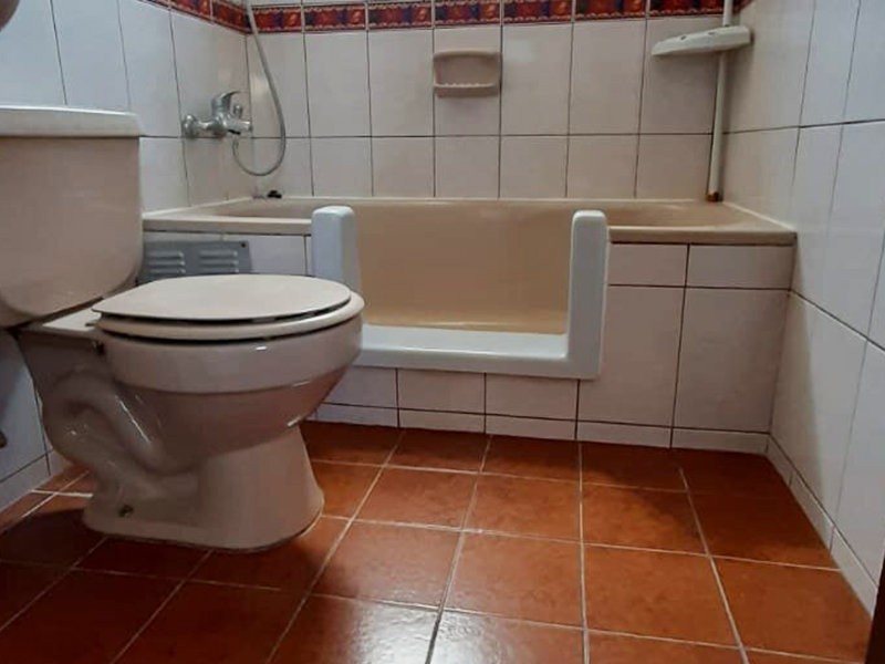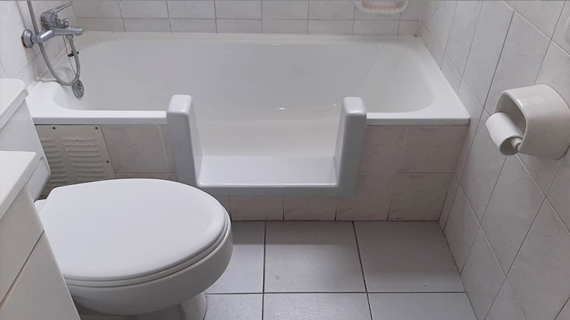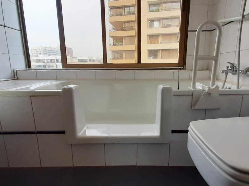 Consiste en adaptar tinas de baños normales o hidromasajes, de manera que las persona que tienen problemas de movilidad - en especial adultos mayores - puedan acceder y salir de ésta con mayor facilidad.