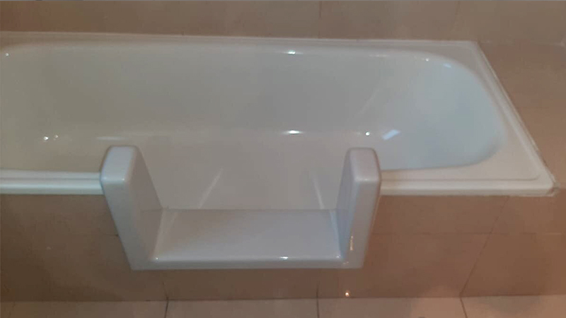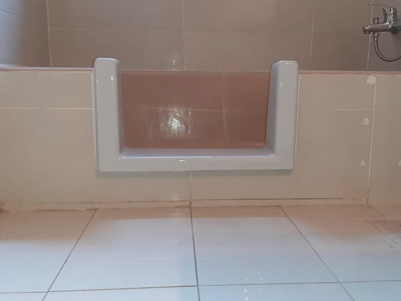 Consiste en cortar un tramo de la tina dejando una pasada de 50 cm de ancho y se coloca un marco de fibra de vidrio alrededor. Así se baja considerablemente la altura de acceso a la tina, con la consiguiente facilidad para aquellas personas que por cualquier razón les cuesta entrar y salir de la tina.